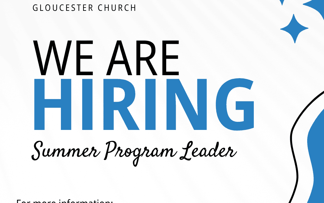 Once again, Gloucester church is hiring a summer student to lead our summer kids’ programming. This might be the job for you if: You are between 16 and 30. You enjoy working with children. You want to serve Jesus in your work. If you are interested, please contact the office for more details.