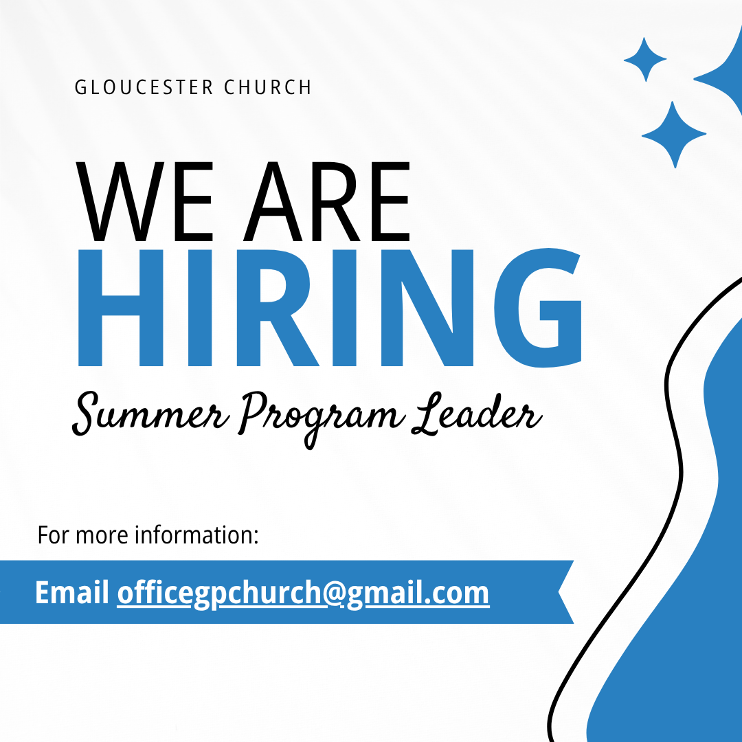 Once again, Gloucester church is hiring a summer student to lead our summer kids’ programming.